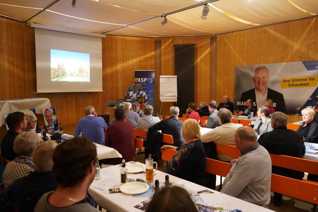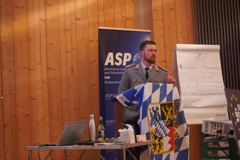 Nahezu bis auf den letzten Platz war diese öffentliche Vortragsveranstaltung des ASP Neu-Ulm und des CSU Ortsverbandes Illertissen ausgebucht. Offensichtlich besteht in Anbetracht der oft bedrückenden täglichen Nachrichten zu diesem Thema Bedarf an ungefilterten Informationen aus erster Hand und an einer Gelegenheit zur Aussprache. Deutschland ist ohne Zweifel dramatisch gestiegenen Risiken aus den regionalen und globalen Spannungen, Konflikten und Kriegen der Gegenwart und nahen Zukunft ausgesetzt. Die wenigen Stunden dieses Abends waren für den hervorragend qualifizierten Referenten völlig ausreichend, um auch kaum bekannte Fakten und Zusammenhänge zu präsentieren, die den Besuchern nun besondere Schlüsse auf Konfliktursachen und -perspektiven erlauben. Ein großer Dank gilt dem Jugendoffizier der Bundeswehr, Herrn Hauptmann Skrbensky, der mit seiner militärischen Erfahrung und seiner akademischen Bildung im Bereich der Staats- und Sozialwissenschaften diesen Abend für alle zu einem besonderen Erlebnis gemacht hat.