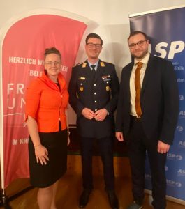 Oberleutnant Dempfle (Mitte) mit Christin Stepanski (Vorsitzende der FrauenUnion CSU KV Neu-Ulm) und Christian Renz (Vorsitzender des ASP Neu-Ulm)